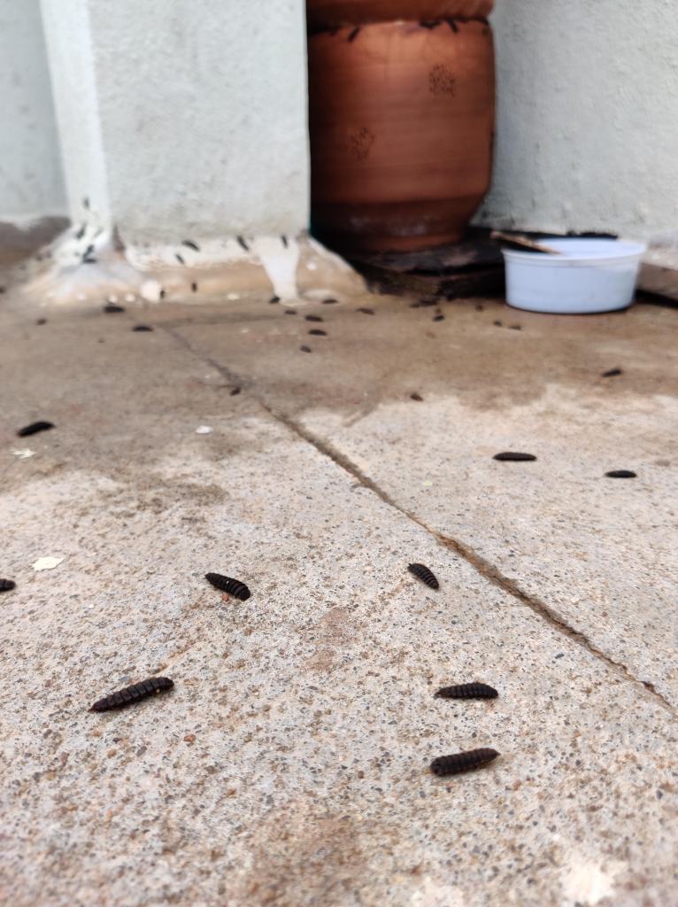 This ecosystem is supported by many other invertebrates and microorganisms to convert our waste into black gold of nutritious compost that can be used to grow food or other plants. The pupae are also a fantastic source of nutrition to robins, bulbuls and chats that visit our composter. For the open minded, they are also a good place to start eating home-made high quality protein.